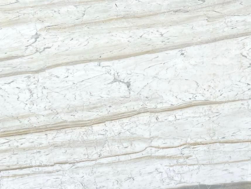 Volakas marmo di più recente estrazione grazie al suo fondo bianco e alla vivacità delle sue vene può richiamare i marmi italiani più ricercati.